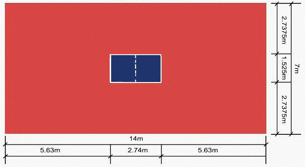 竞技领域为长 14 米、宽 7 米(高 5 米)的长方形区域。且各边角由长1.5 米以下的围栏围成。