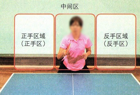对于比赛区域而言,以中线为界,右侧为正手区域(也简称为正手区),左侧为反手区域(也简称为反手区),中线附近则为中间区。