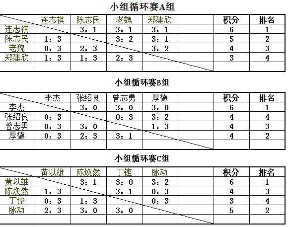 第79期厦门乒友积分赛战果:冠军--李杰、亚军--陈焕然(又名:肥肥)、季军--黄以雄