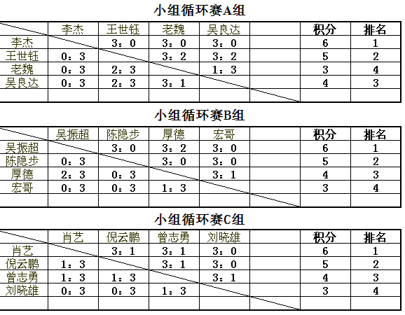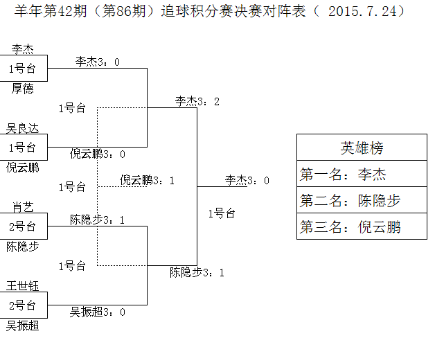 2015年7月24日,厦门乒友第86期积分赛在追球球馆举行。战果如下:李杰夺