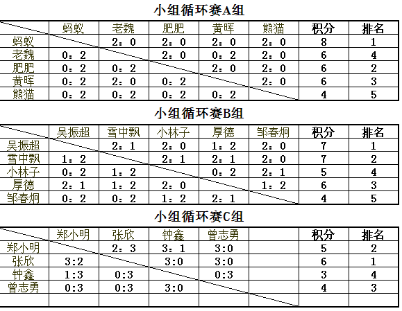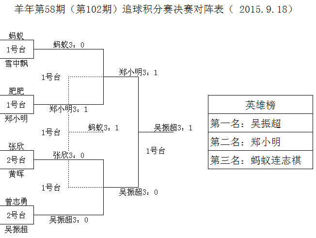 2015年9月18日,厦门乒友第102期积分赛在追球球馆举行。战果如下: