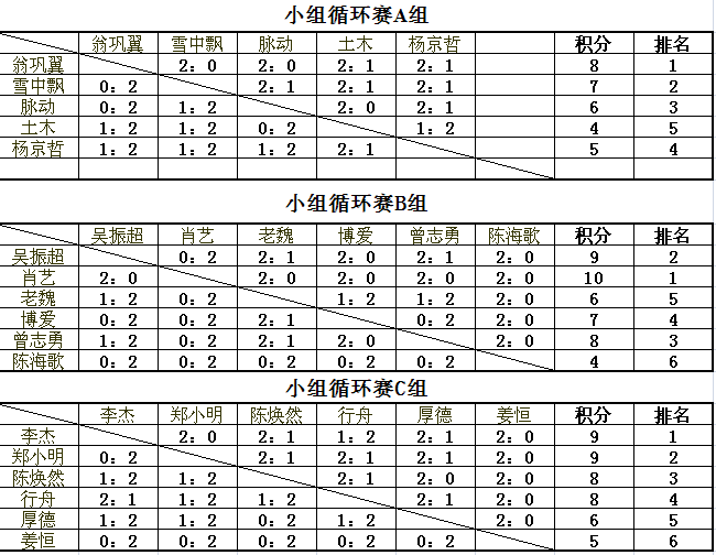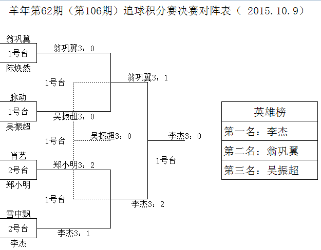 2015年10月9日,厦门乒友第106期积分赛在追球球馆举行。战果如下: