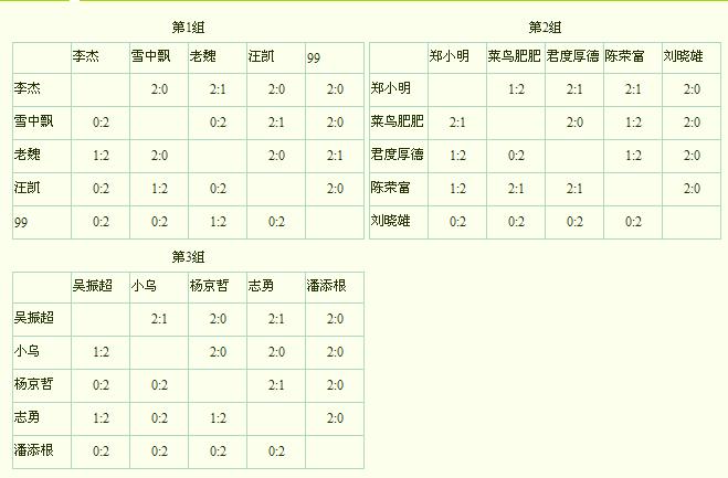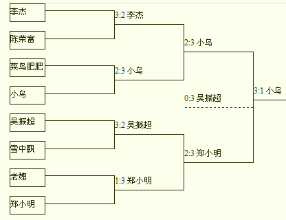 2015年11月13日,厦门乒友第116期积分赛在追球球馆举行。战果如下: