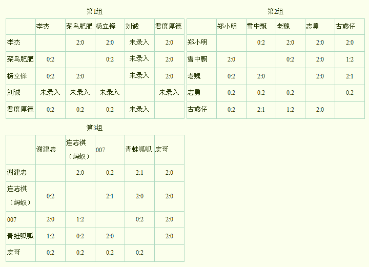 2015年12月18日,厦门乒友第126期积分赛在追球球馆举行。战果如下: