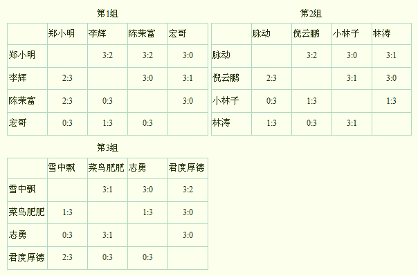 2015年12月25日,厦门乒友第128期积分赛在追球球馆举行。战果如下:雪中飘第一名,郑小明第二