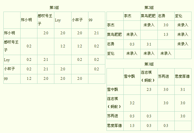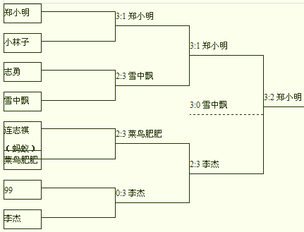 2016年1月8日,厦门乒友第131期积分赛在追球球馆举行。战果如下:郑小明第一名,李杰第二