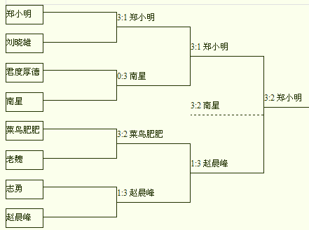 2016年1月29日,厦门乒友第137期积分赛在追球球馆举行。战果如下:郑小明第一名,赵晨峰第二